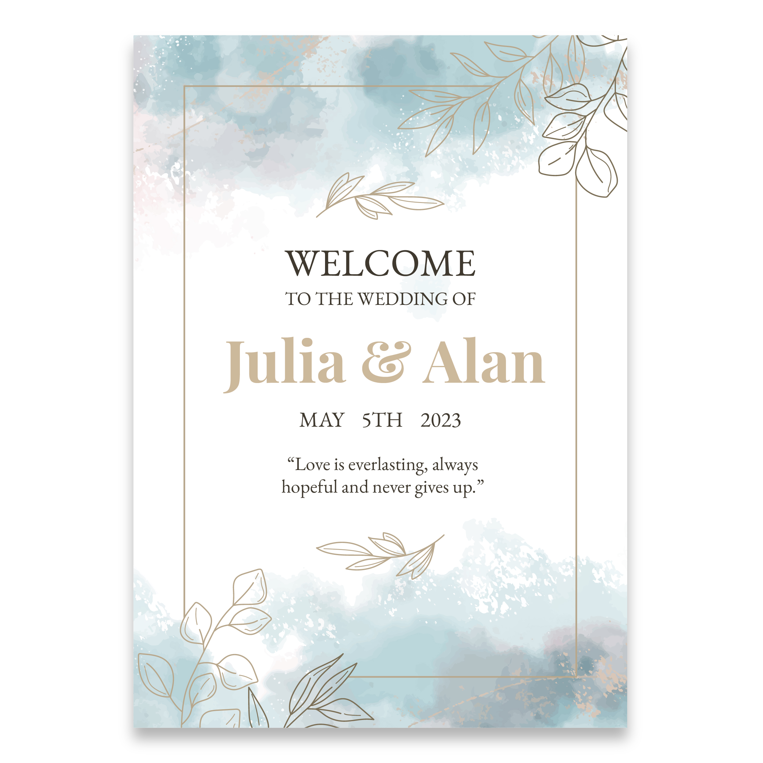 Add a touch of elegance and personalization to your wedding with our high-quality, customizable signs. Printed on durable foam board, these signs are not only beautiful but also sturdy and long-lasting.